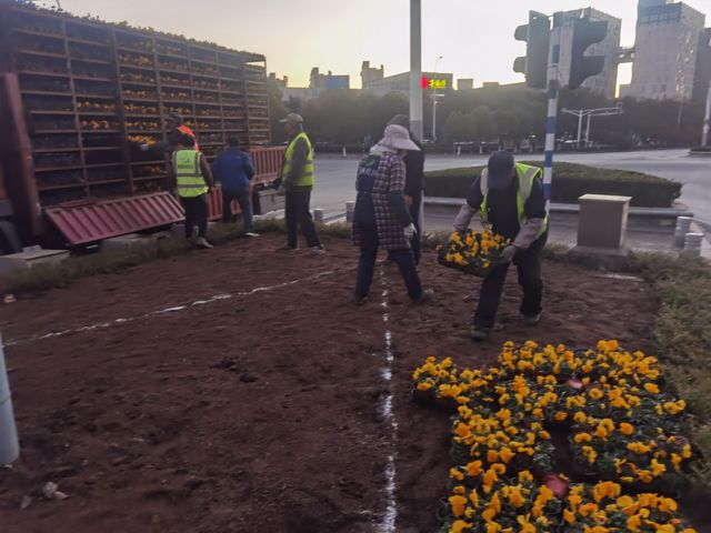 冬季的清晨,寒意逼人,園林工匠們卻干的熱火朝天。清理秋季草花、施肥整地,根據(jù)更換方案,對(duì)草花花色進(jìn)行合理搭配,以求達(dá)到花色鮮艷、品種豐富的景觀效果。在植物配置時(shí),進(jìn)行了圖案設(shè)計(jì),如河西大街長(zhǎng)方形套圖、樂(lè)山路、奧體大街花境設(shè)計(jì)布置等,構(gòu)成了一幅幅靈動(dòng)活潑的圖畫,不僅美化了城市景觀效果,也為冬季出行的市民呈現(xiàn)了一道靚麗的風(fēng)景線。