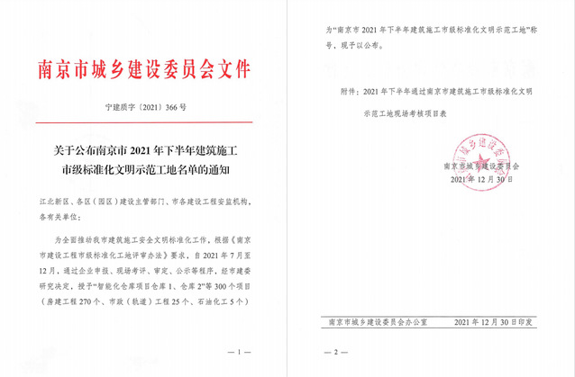 近日,河西集團(tuán)新城公司河西金融中心項(xiàng)目喜獲市建委工程質(zhì)量安全監(jiān)管處發(fā)布的2021年下半年“市標(biāo)準(zhǔn)化文明示范工地”稱號(hào)。