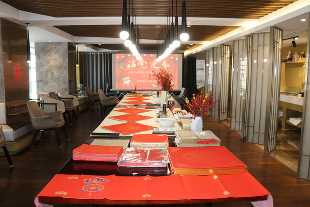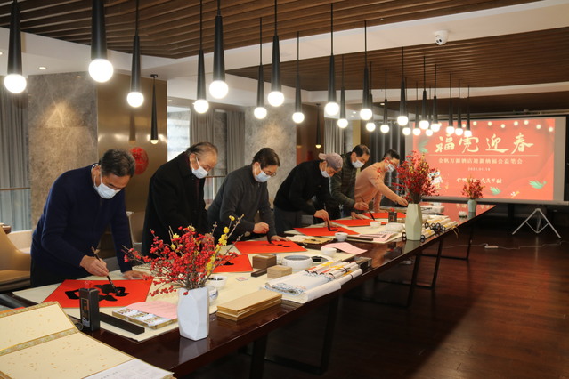 寫春聯(lián)、貼春聯(lián)是中國春節(jié)的傳統(tǒng)習(xí)俗,也是辭舊迎新過大年的一種象征。為弘揚(yáng)中華書法藝術(shù)與傳統(tǒng)節(jié)日文化,給市民、住店客人送上新春祝福。近日,河西集團(tuán)青奧城公司金帆萬源酒店開展“?;⒂骸?022新年納福公益筆會,來自南京的書畫名家應(yīng)邀出席。