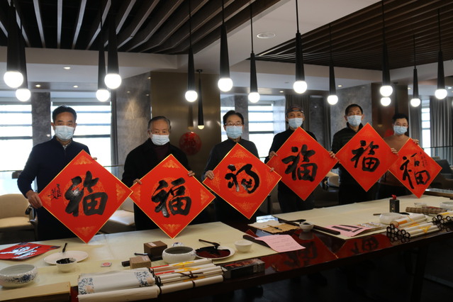 “東風(fēng)化雨山山翠,政策歸心處處春”;“行鴻運(yùn)年年興旺,迎百福歲歲平安”……一幅幅蒼勁有力的春聯(lián),一句句吉祥喜慶的祝福,一個個手寫的福字,將迎接新春的喜慶傳給大家。