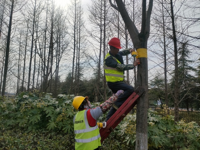 這項舉措不僅可以大大降低綠化養(yǎng)護(hù)成本,并且還不存在農(nóng)藥殘留,不污染環(huán)境。目前公司綠化養(yǎng)護(hù)人員已經(jīng)對嗇園路83株欒樹、蒼山路的20余株紫葉李進(jìn)行了膠帶黏蟲實驗,后期公司將持續(xù)進(jìn)行觀察,來檢驗其防治效果,為后期開展病蟲害防治提供寶貴的科學(xué)依據(jù)。
