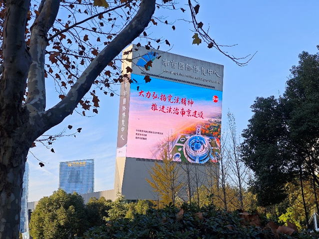 憲法是國家的根本大法,是治國安邦的總章程。今年12月4日是第十個國家憲法日,12月4日所在的周是第六個“憲法宣傳周”。為深入學(xué)習(xí)宣傳貫徹習(xí)近平法治思想,著力營造學(xué)習(xí)宣傳憲法的濃厚氛圍,弘揚憲法精神,維護憲法權(quán)威,集團充分借力戶外大屏媒介載體進行普法宣傳,會展、公園、酒店等板塊根據(jù)集團部署聯(lián)運同步點亮“大力弘揚憲法精神、推進法治南京建設(shè)”宣傳標語,利用各類公共場所電子顯示屏滾動播放,使憲法宣傳走進千家萬戶。